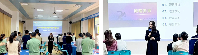 凃總在開營儀式上表達了公司對此次訓練營成果的期許,希望大家?guī)е鴨栴}、帶著使命參與培訓,結(jié)合產(chǎn)品損耗、報廢率、產(chǎn)品品質(zhì)等生產(chǎn)相關(guān)數(shù)據(jù),認真思考生產(chǎn)流程中可能存在的問題,在訓練營中進行查缺補漏。同時,希望所有參訓學員保持空杯心態(tài),在培訓中持續(xù)提升技能,將課程所學知識轉(zhuǎn)化為公司經(jīng)營結(jié)果,為公司創(chuàng)造價值的同時實現(xiàn)自我成長與能力提升。