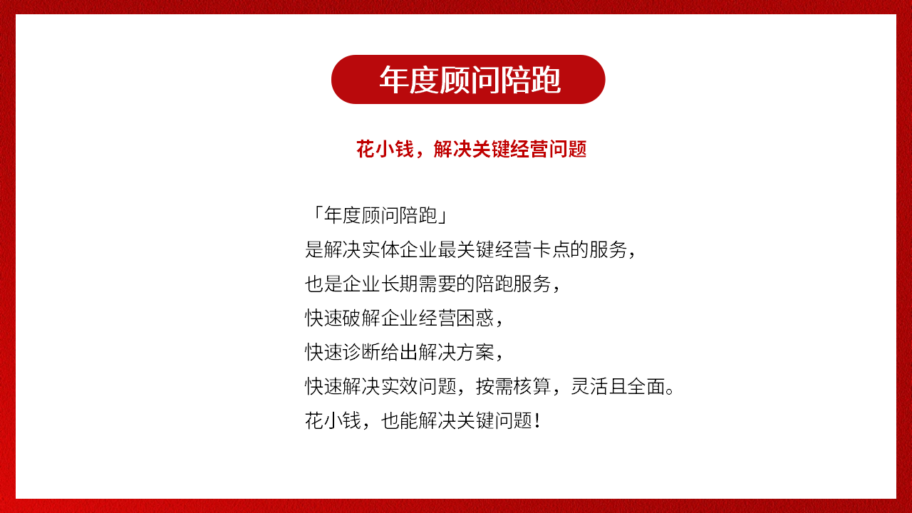 破解經(jīng)營困惑,解決關(guān)鍵卡點,以目標為起點,陪跑企業(yè)拿到更好經(jīng)營結(jié)果