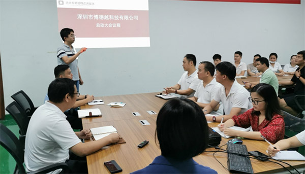 項(xiàng)目啟動會上,博德越王總表示,公司現(xiàn)在發(fā)展越來越快,需要更優(yōu)的管理模式,現(xiàn)在公司邀請遠(yuǎn)大方略的老師來做指導(dǎo),將對精益生產(chǎn)及交付管理系統(tǒng)一改到底。改善前期是非常痛苦的,但是為了公司更好的發(fā)展,痛苦也要改。遠(yuǎn)大方略在精益生產(chǎn)和交付改善等方面都是非常專業(yè),所有人都要無條件配合遠(yuǎn)大的老師做好此次改善項(xiàng)目。