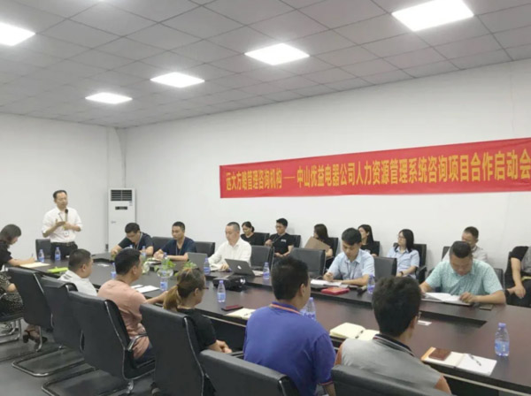 中山市優(yōu)益電器實業(yè)有限公司(以下簡稱“優(yōu)益電器”)攜手遠大方略啟動《人力資源組織系統(tǒng)》管理改善項目。遠大方略咨詢師張老師、程老師入駐優(yōu)益電器,通過前期對優(yōu)益電器公司的深入調(diào)研與探討,本期項目主要圍繞戰(zhàn)略目標梳理、組織與職位規(guī)劃設(shè)計、核心人才選聘、人員任用管理、人才激勵與培育展開改善。