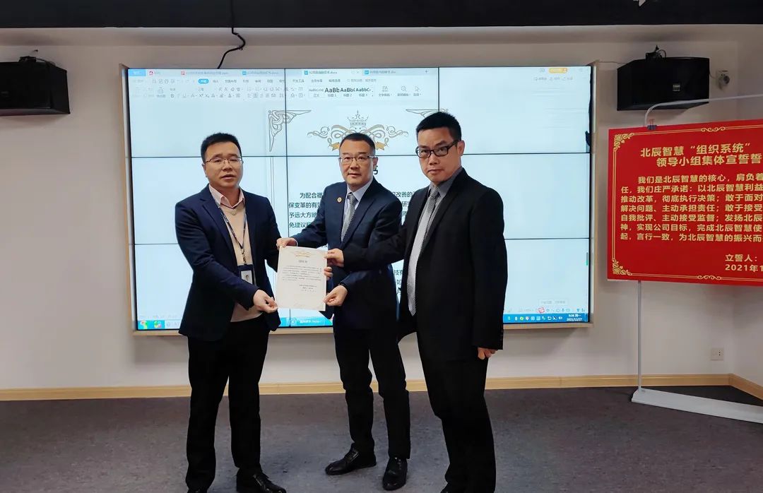 啟動(dòng)會(huì)最后,潘總給咨詢項(xiàng)目“變革領(lǐng)導(dǎo)小組”頒發(fā)了任命書,集體進(jìn)行了宣誓,大家信心滿滿,相信此次改善定能給北辰智慧帶來質(zhì)的改變。