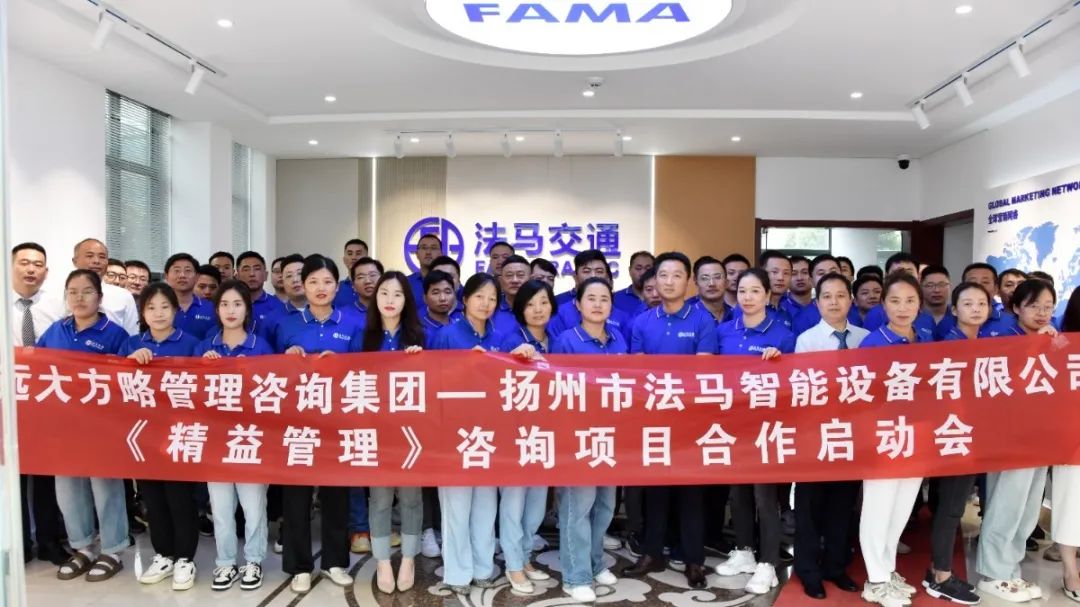 揚(yáng)州市法馬智能設(shè)備有限公司(以下簡(jiǎn)稱(chēng)“法馬交通”)攜手遠(yuǎn)大方略啟動(dòng)《精益管理》咨詢(xún)項(xiàng)目。優(yōu)化生產(chǎn)管理流程,提升工作效率,降低綜合成本,增強(qiáng)核心競(jìng)爭(zhēng)力。