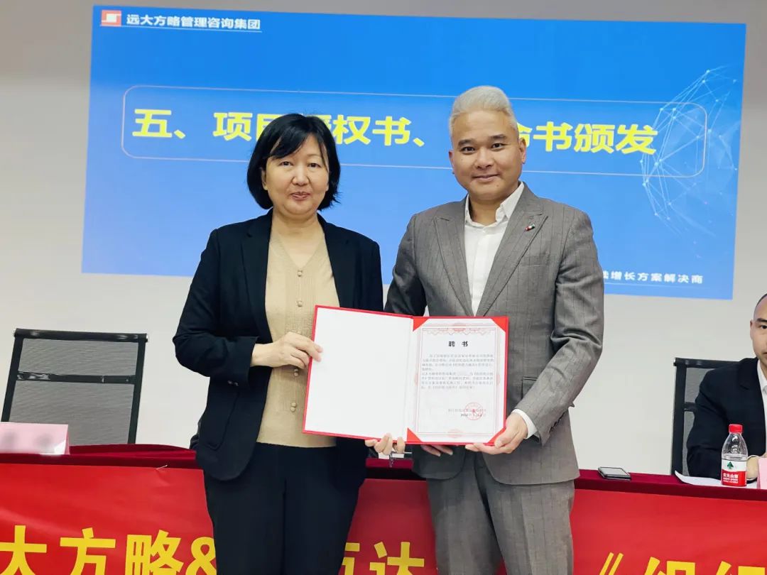 △胡總為遠(yuǎn)大方略組織變革項(xiàng)目組頒發(fā)聘書