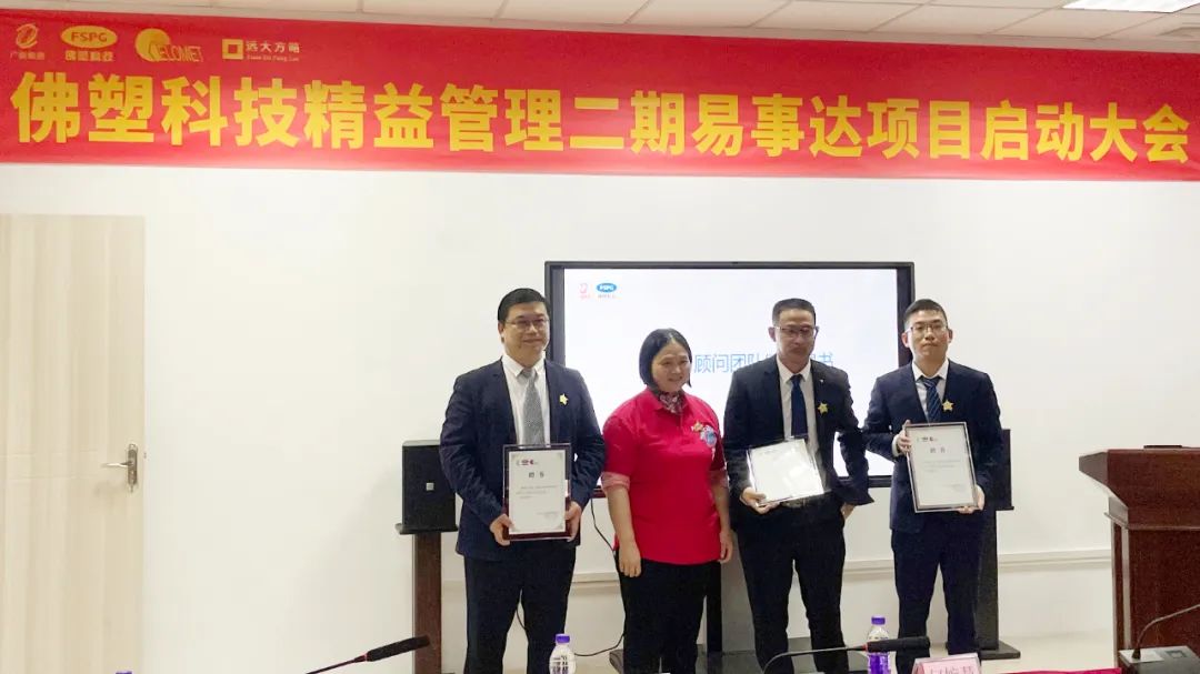 鐘總還為遠(yuǎn)大方略項(xiàng)目組頒發(fā)了個(gè)人聘書及團(tuán)隊(duì)授權(quán)書,為精益管理推進(jìn)辦公室成員和精益管理專項(xiàng)工作組組長(zhǎng)頒發(fā)了個(gè)人任命書。精益管理專項(xiàng)工作組組長(zhǎng)簽署了《佛塑科技易事達(dá)公司精益管理項(xiàng)目承諾書》,并承諾帶領(lǐng)小組全體成員全力以赴,達(dá)成精益管理KPI目標(biāo)。