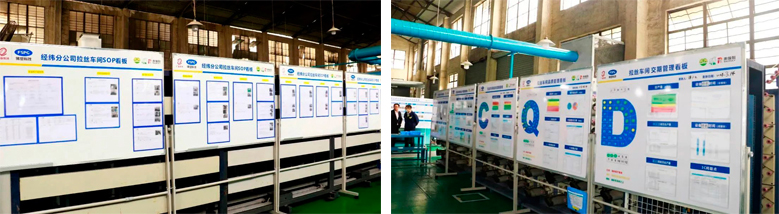 企業(yè)生產(chǎn)管理規(guī)范化、標(biāo)準(zhǔn)化才能實現(xiàn)精細(xì)化,佛塑科技通過精益管理變革全面推行6S管理,建立了各類6S及可視化管理制度、流程、標(biāo)準(zhǔn)以及工具,共復(fù)制改造近200個6S區(qū)域;項目施行領(lǐng)導(dǎo)“走動式管理”調(diào)動了員工積極性,快速、全面地掌握生產(chǎn)的最新信息,提高決策的科學(xué)性和正確性,現(xiàn)場解決一線操作問題,提升了企業(yè)效率;建立SOP標(biāo)準(zhǔn)操作程序,完成100+關(guān)鍵崗位SOP編制,生產(chǎn)效率提升5%,換膜時間降低50%。