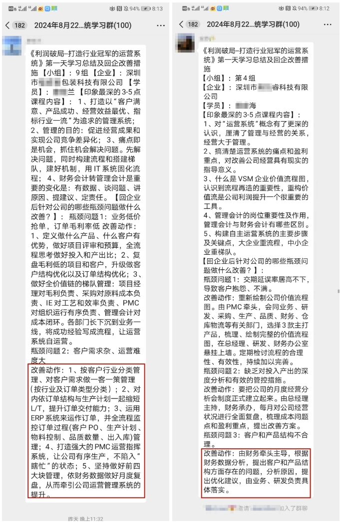 課程案例部分的痛點、問題點與現(xiàn)場的解決方法與我們公司的實際情況高度契合。認識到運營系統(tǒng)對企業(yè)的重要性,我們要足夠的重視;重構運營系統(tǒng)將給公司帶來質的改變,通過老師課堂上講授的方法,我們回去要重新梳理運營的流程、問題點并及時給以解決。