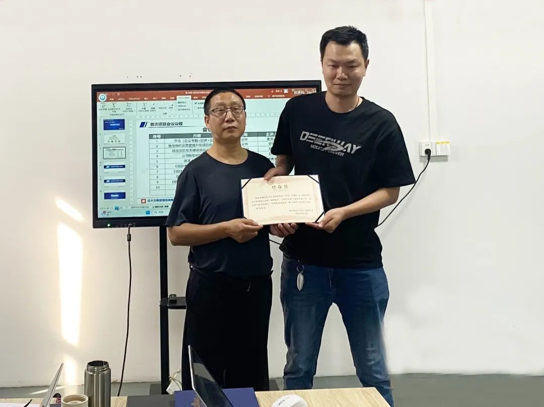 會上,舒總為項(xiàng)目老師和項(xiàng)目關(guān)鍵成員進(jìn)行授權(quán)和任命。
