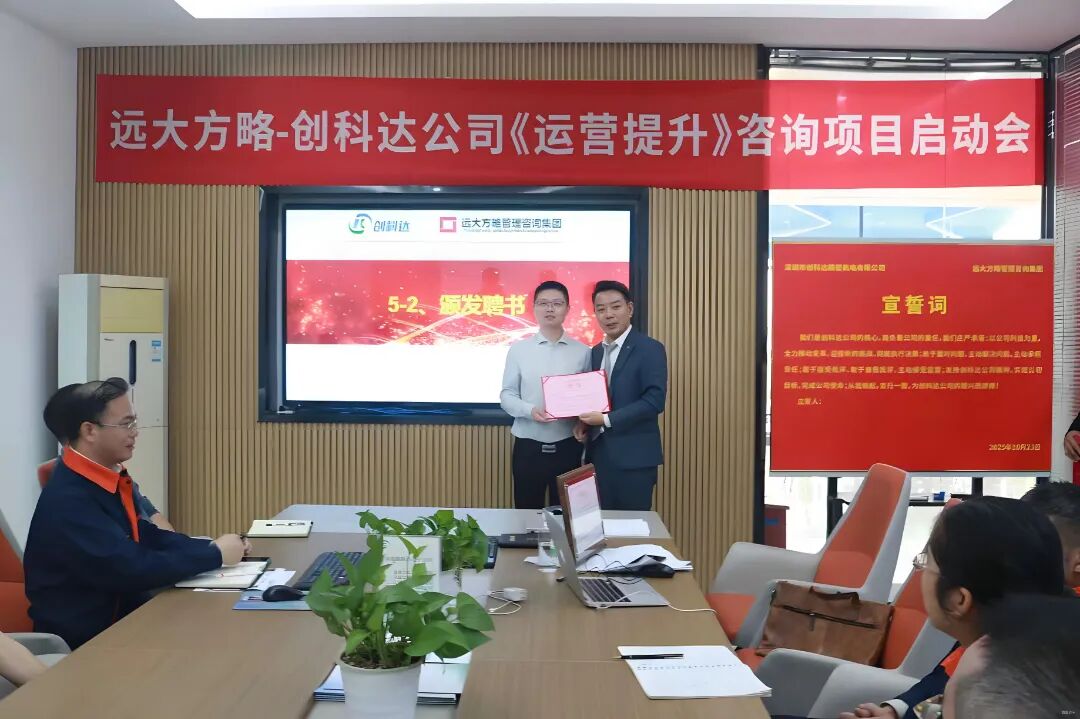 近日,深圳市創(chuàng)科達精密機電有限公司(以下簡稱“創(chuàng)科達”)攜手遠大方略啟動《卓越運營》咨詢項目,進行科學、系統(tǒng)的管理升級,優(yōu)化供應鏈管理,減少庫存積壓,提升資金周轉率;現(xiàn)場 5S 管理營造干凈整潔的環(huán)境,提高效率與質量,降低事故率;完善組織架構,提升團隊管理效率,合理配置資源,提高決策準確性。全方位提升運營管理水平,為企業(yè)高質量發(fā)展注入強勁動力。